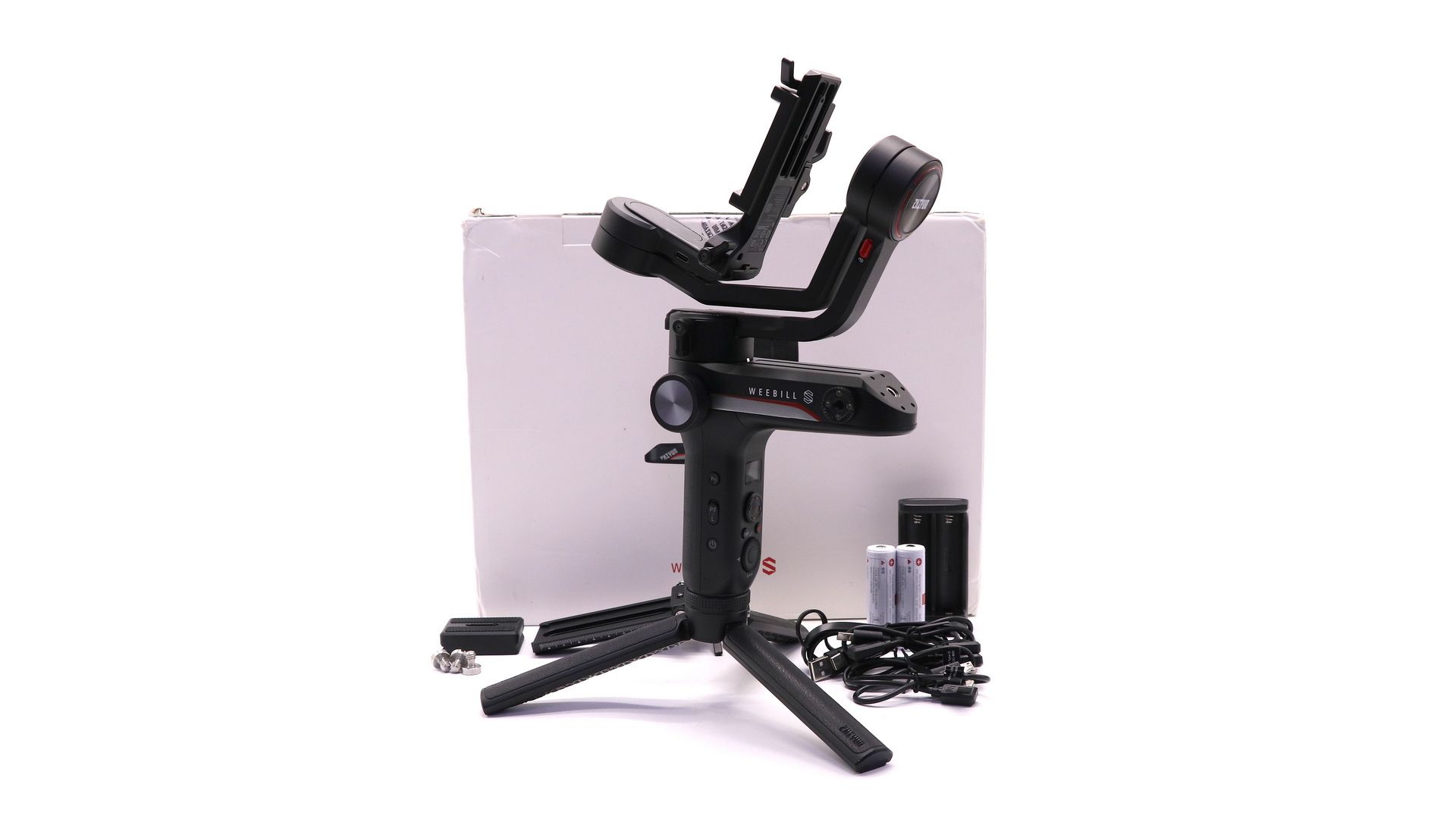 Комплектация:Коробка, стабилизатор, быстросъёмная площадка, настольная тренога, аккумулятор 18650 (2 шт), зарядное устройство, базовая площадка, винты 1/4" (3 шт), кабель контроля ZW-Micro-002, кабель контроля ZW-Mini-002, кабель контроля ZW-Multi-002, кабель контроля LN-MBUC-B01, кабель обновления прошивки Type-C, кейс.