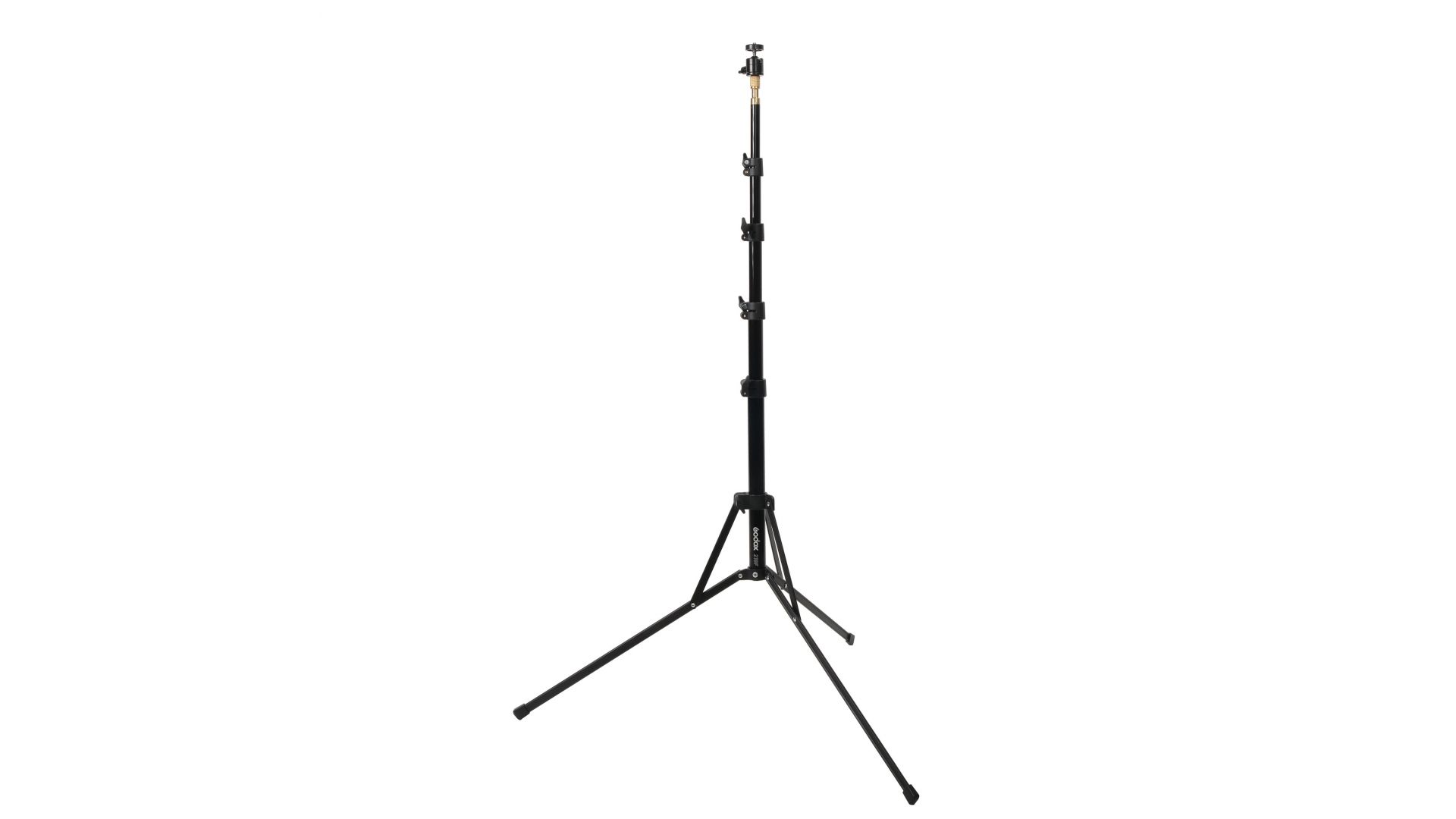 Godox 210F - алюминиевая стойка-тренога с 5-секционной телескопической центральной колонной, на конце которой закреплен несъемный латунный шпигот диаметром 5/8” с резьбой 1/4” и шаровой головкой. Стойка предназначена для установки цифровых камер для съемки в фото- или видеостудии, а также на выезде.