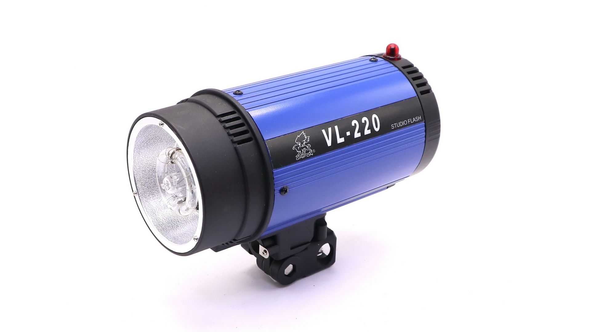 Отличительной особенностью вспышки Grifon VL-220A является её полностью металлический корпус и возможность отключать световую ловушку. Вспышка снабжена креплением для зонта. Мощность - 220 Дж. Ведущее число - 38. Плавная регулировка - до 1/8. Кнопка откл. светоловушки. Металлический корпус.