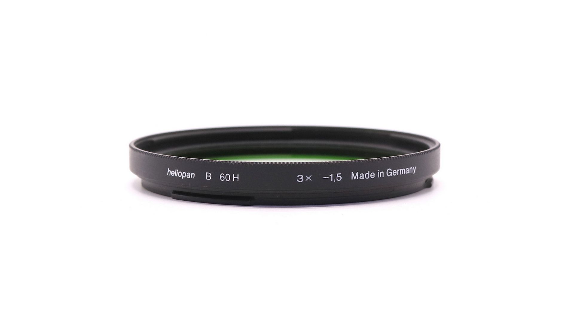 Светофильтр Heliopan B 60H 3x -1,5 - зелёная насадка на объектив камеры, которая помогает определенного эффекта. Он применяется при съёмках пейзажей, в которых преобладает зелень разных оттенков. Он способствует разделению тонального изображения этих оттенков.