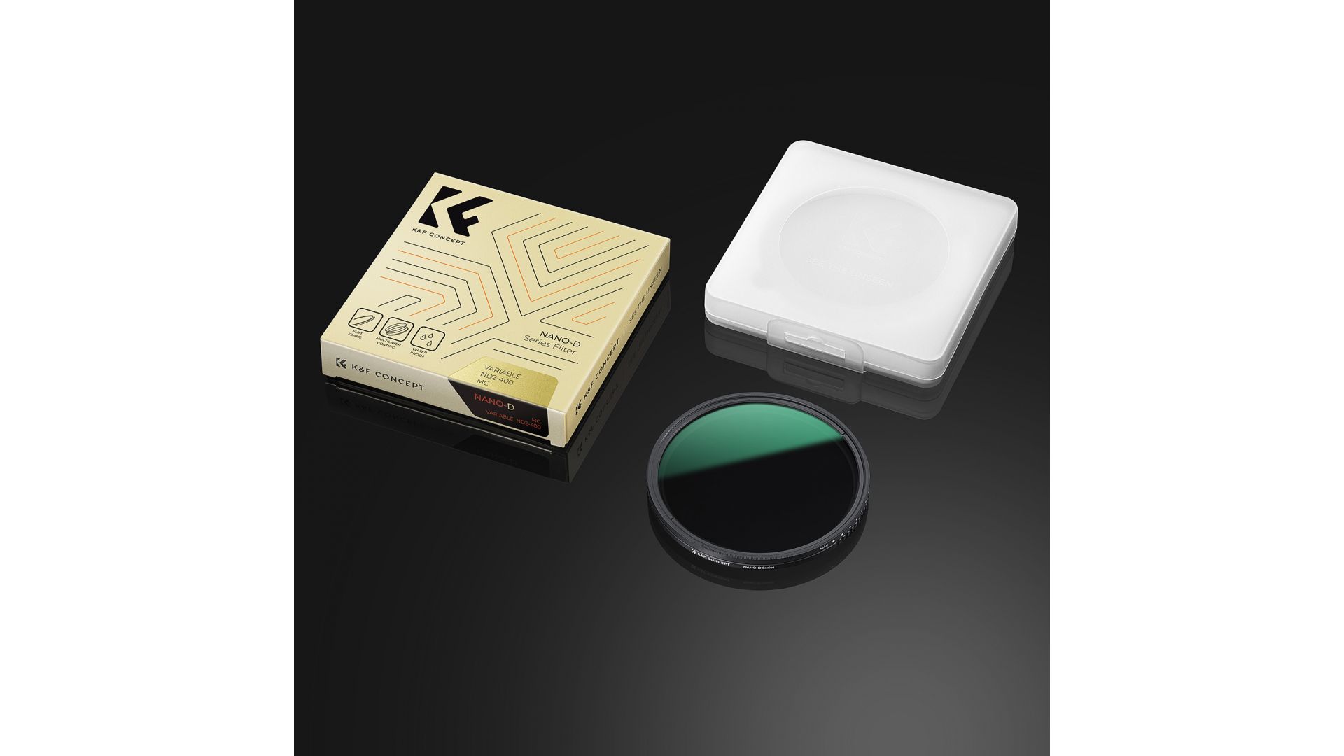 Регулируемый фильтр ND2-ND400 серии K&F Concept Nano D изготовлен из оптического стекла HD AGC, в общей сложности 24 многослойных покрытия помогают отталкивать воду и пыль, эффективно уменьшая отражение от самого фильтра и блики. Поверхность линзы окислена и обработана пескоструйной обработкой, что эффективно предотвращает попадание рассеянного света и замедляет отражение от металлической поверхности.
