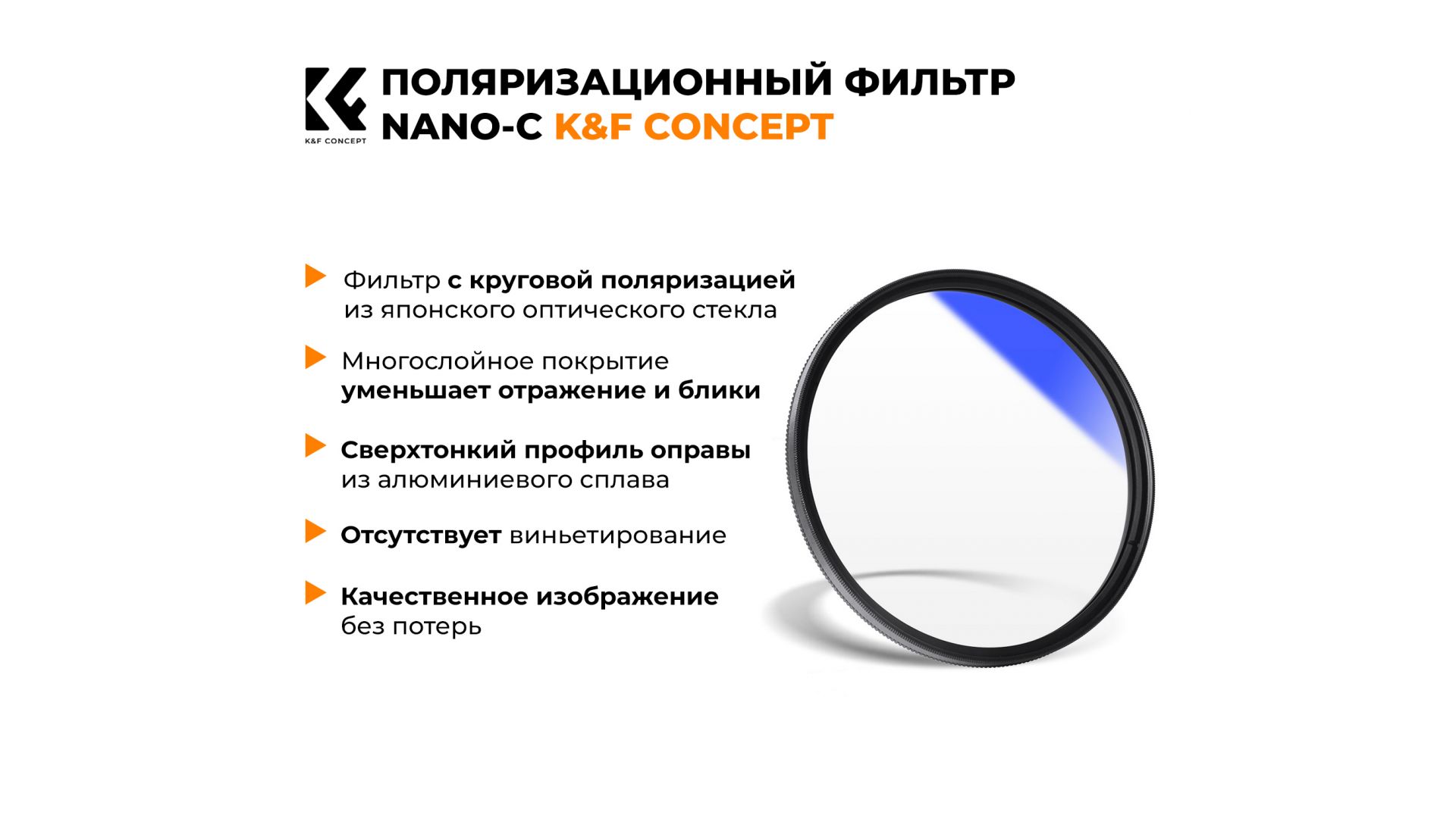 Новый оригинальный светофильтр K&F Concept NANO-C HMC CPL 58mm. Производитель K&F Concept, Китай.