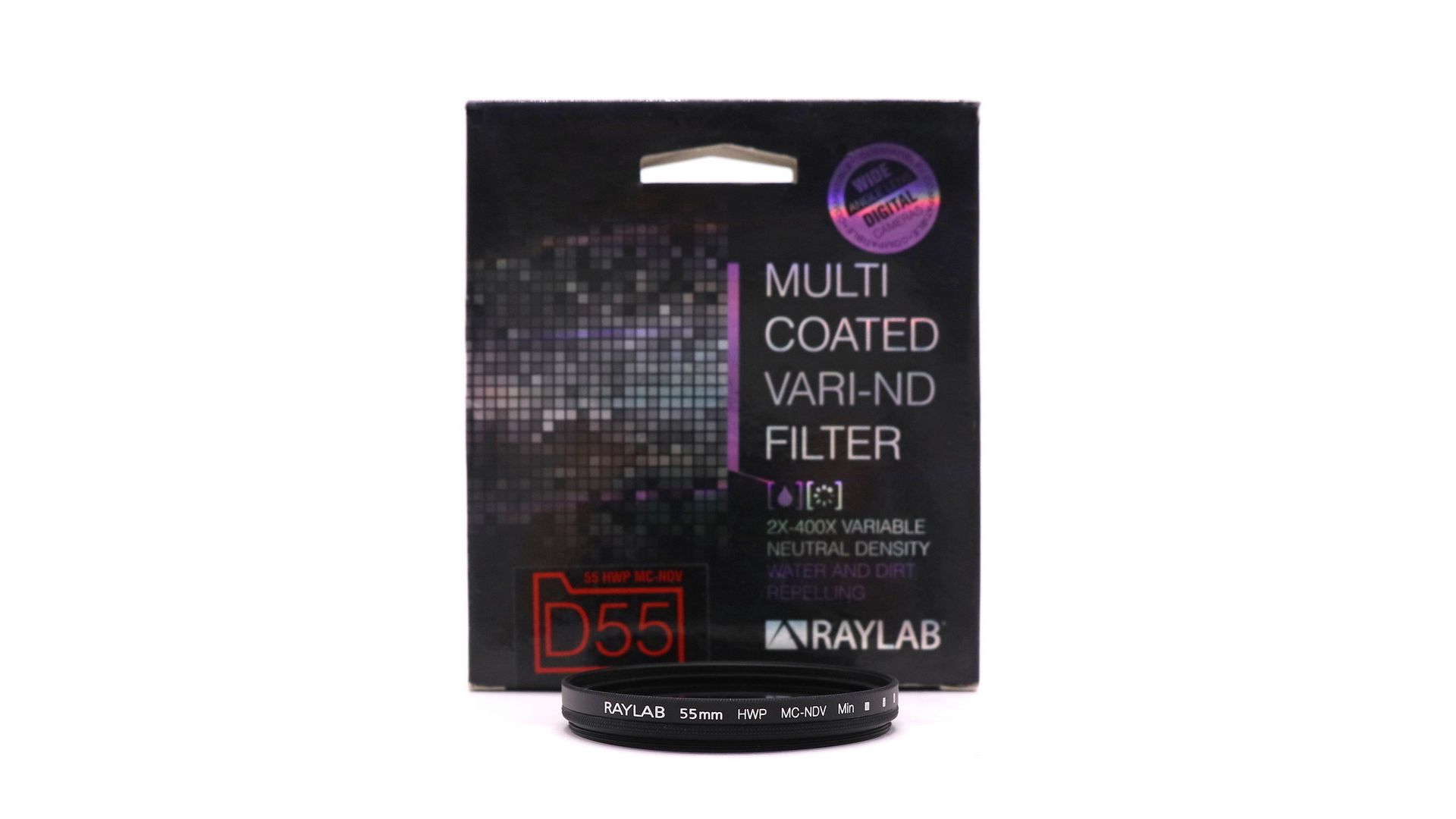 Raylab 55mm HWP MC-NDV - универсальный светофильтр нового поколения, обеспечивающий снимки с коррекцией экспозиции до девяти ступеней. Фактически, представляет из себя два поляризационных фильтра, закрепленных в движущейся оправе таким образом, что один из них вращается относительно другого. Использование оптического стекла фирмы SCHKOTT и мультипросветление (до 14 слоёв) обеспечивают высочайшее качество изображения, а водо- грязезащитное покрытие и тонкая увеличивают удобство использования. Таким, образом, Raylab HWP MC-NDV 55mm обеспечиват высокое качество и удобство, при этом занимает меньше места и стоит дешевле чем коллекция нейтральных светофильтров, которые способен заменить. Отдельно стоит упомянуть высокую востребованность таких фильтров в видеосъёмке - помимо возможности снимать на ярком свету с открытой диафрагмой, такой фильтр обеспечит эффект плавного затемнения или осветления изображения.