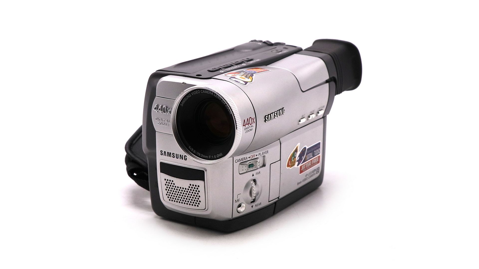 – Отличительные особенности: формат Video8, оптический зум 22×, цифровой зум 440×, матрица 0,32 Мпикс, ЖК-экран 2,5 дюйма