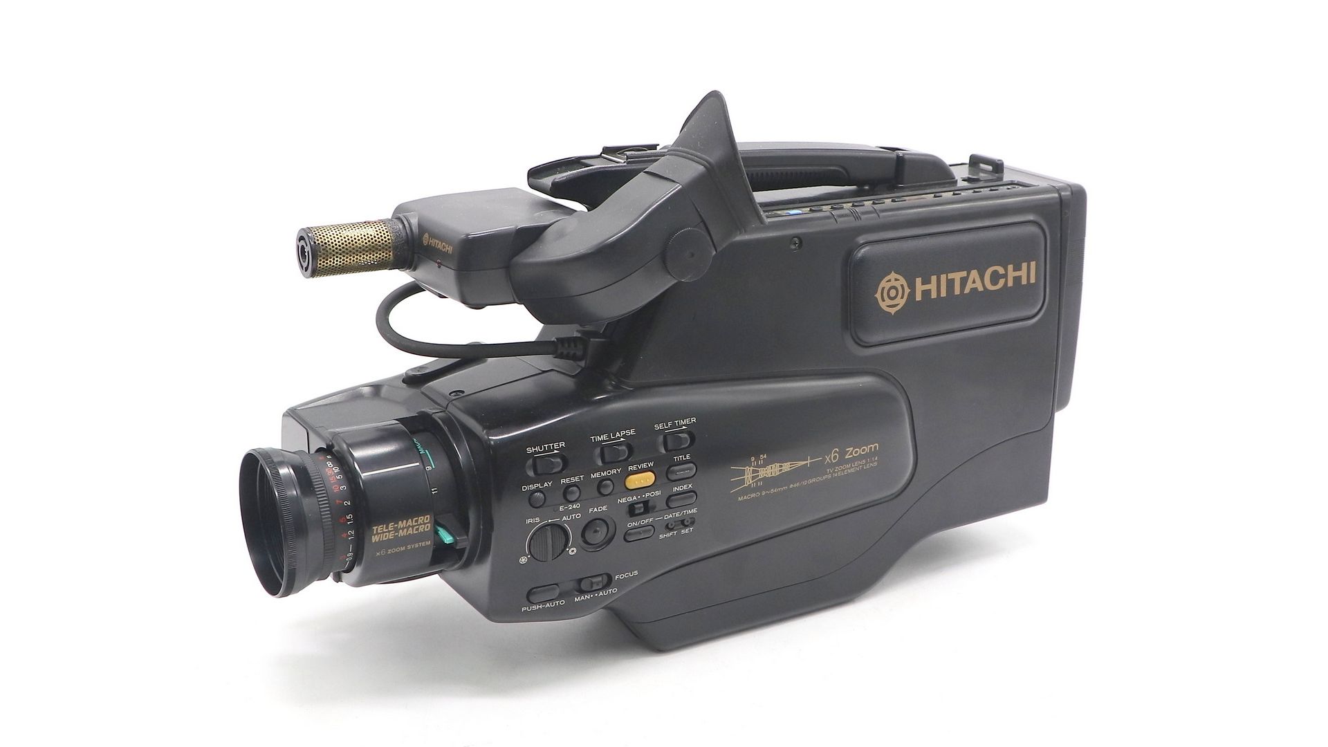 Камера обладает 6-х кратным увеличением. Формат - полноразмерный VHS (NTSC/PAL). Имеется авто перемотка пленки, авто фокусировка, запись даты и времени, счетчик ленты кассеты, память счетчика, редактирование, цифровые видеоэффекты.