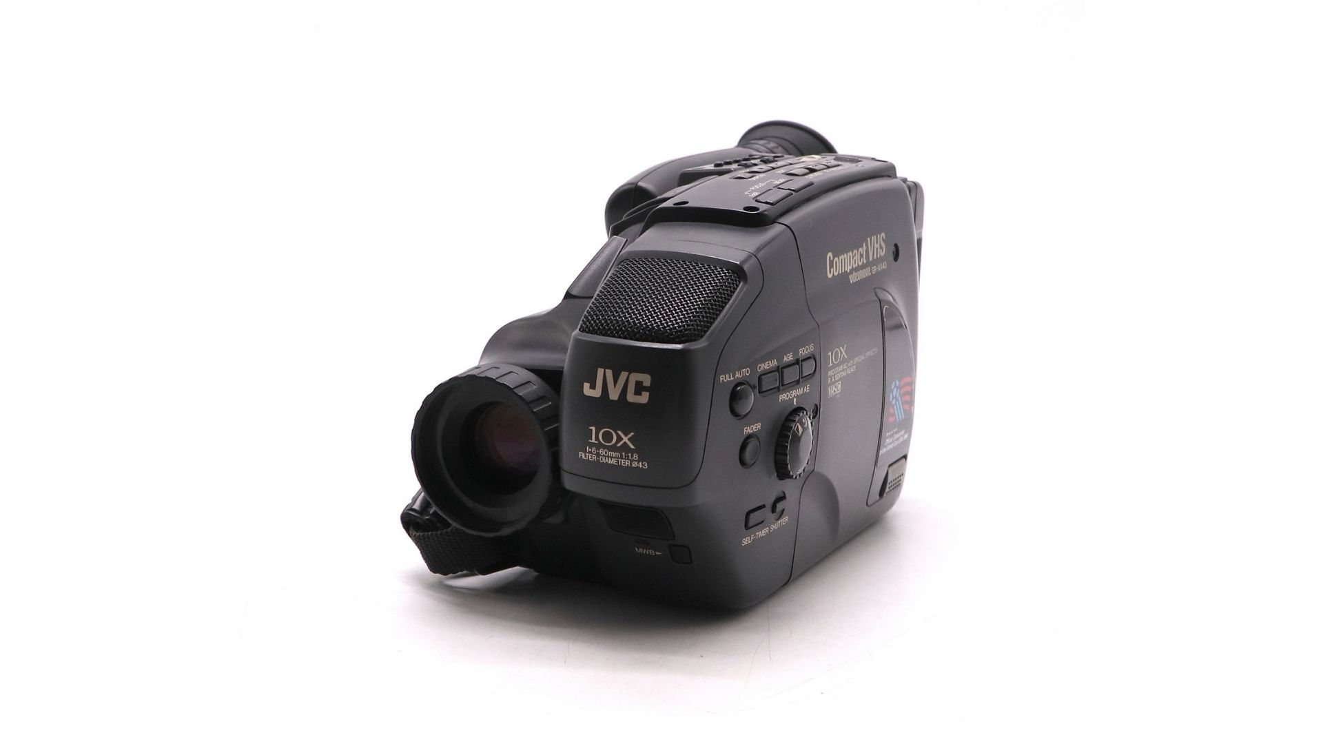 Видеокамера JVC Compact VHS GR-AX43E — классика бытового видео конца 90-х/начала 2000-х, работающая с кассетами формата Compact VHS (VHS-C). Этот формат позволял использовать компактные кассеты в небольшой камере с возможностью просмотра на стандартном VHS-видеомагнитофоне через адаптер.