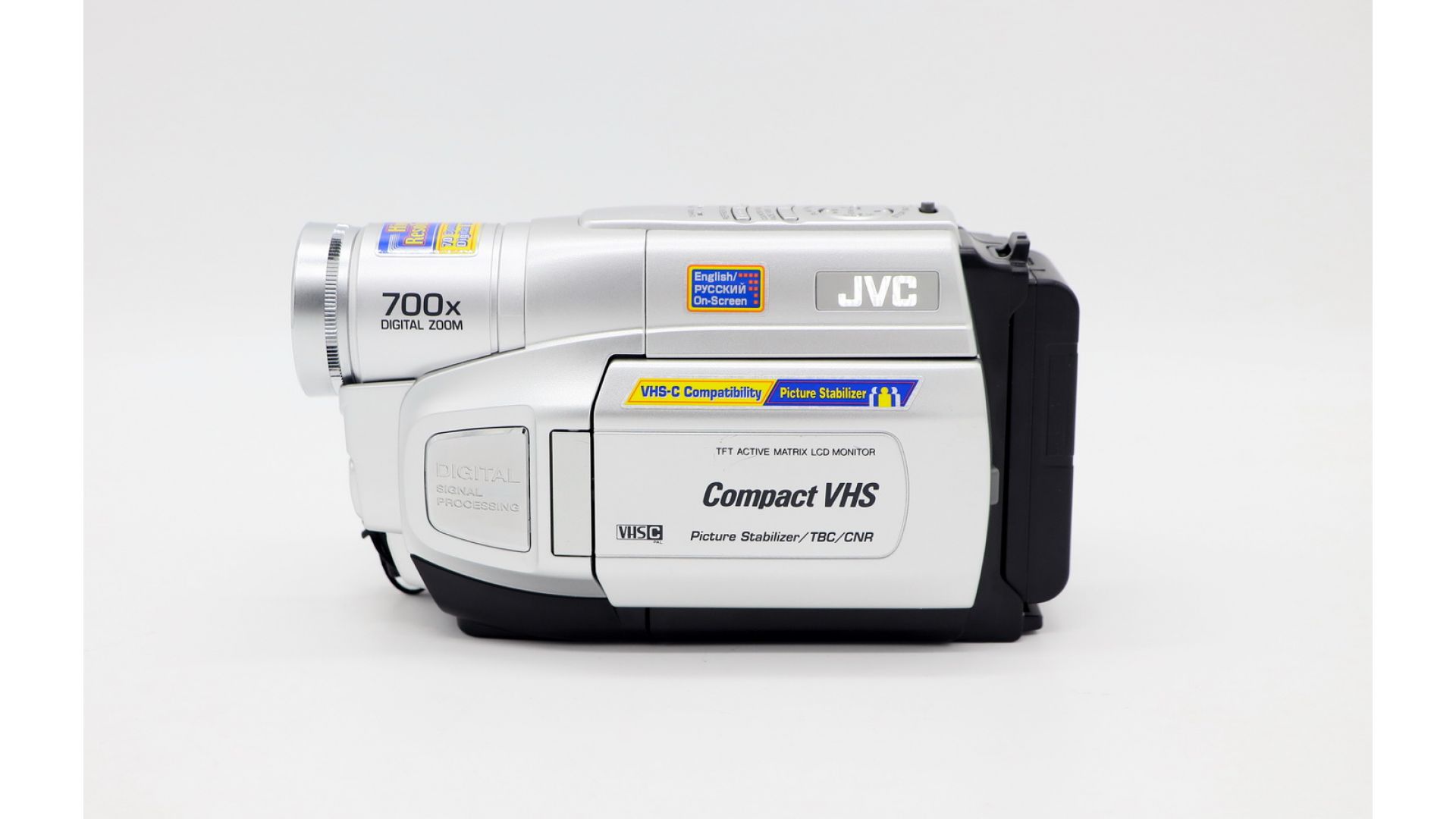 Тип видеокамеры: VHS-C, аналоговая. Тип матрицы: CCD. Матрица - 0.32 Мпикс. Физический размер матрицы: 1/6". Фокусное расстояние объектива: 3.9 - 62.4 мм. Zoom оптический / цифровой: 16x / 700x. Стабилизатор изображения электронный. Полностью цифровая обработка сигнала в секции камеры. Цифровая схема понижения уровня шума цвета.