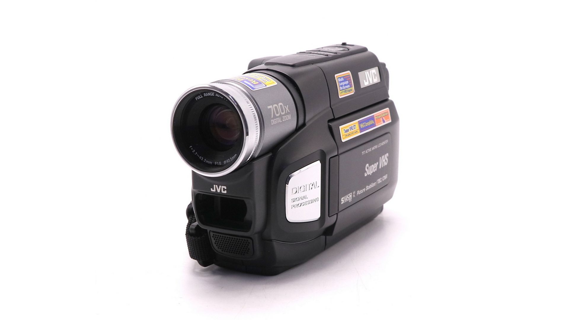 Компактная аналоговая видеокамера формата VHS-C. Оснащена ПЗС-матрицей с разрешением 1/4 дюйма, объективом с 8-кратным оптическим зумом и функцией стабилизации изображения. Имеет цветной видоискатель и поворотный ЖК-монитор для удобства компоновки кадра.