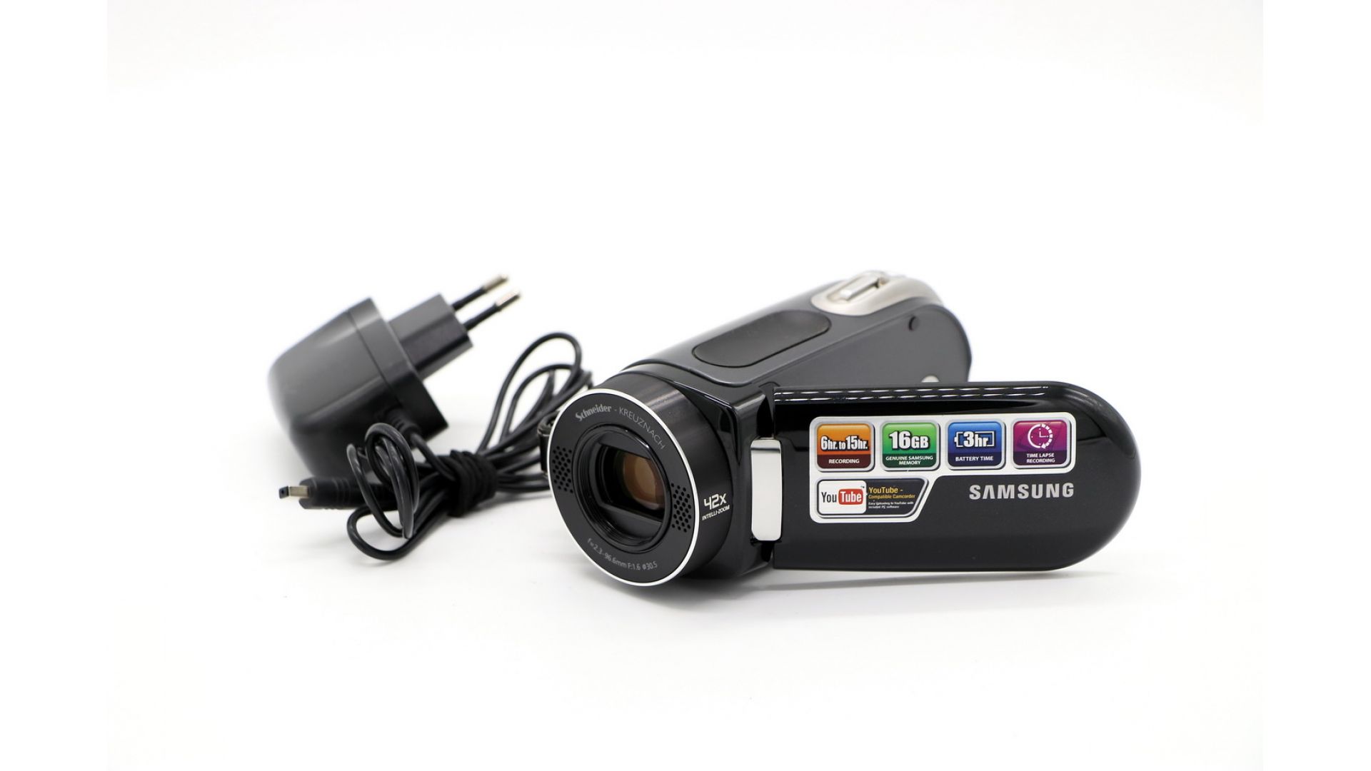 В Samsung SMX-F34 установлен высококачественный объектив «Schneider Kreuznach» с 34-кратным зумом, который гарантирует получение видеоматериала с минимальными искажениями. В камере применяется система трехмерного подавления шумов, обеспечивающая реалистичную картинку и система автофокусировки на лицах, позволяющая фокусироваться на всех лицах, находящихся в поле зрения видоискателя.Samsung SMX-F34 оснащена функцией «Фотосъемка», благодаря чему вам не придется носить с собой два устройства. Также модель имеет режим «Web and Mobile» для записи видео в разрешении, оптимальном для размещения на популярном интернет-ресурсе «YouTube», передачи на медиаплееры и другие портативные устройства. Камера оборудована улучшенным видеопроцессором и батареей с увеличенным ресурсом - вы сможете осуществлять беспрерывную съемку до 180 минут.