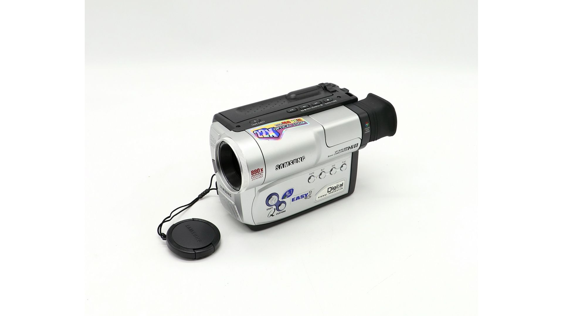 Данная модель представляет собой видеокамеру с 22-кратным трансфокатором длиннофокусного объектива, функцией DSE, которая позволяет придать снятому вами материалу большую выразительность с помощью добавления различных спецэффектов, программой автоматической экспозиции. В видеокамере реализована также функция BLC (компенсация яркого фона), которая используется при съемке на светлом фоне или если во время съемки источник света располагается за объективом съемки.