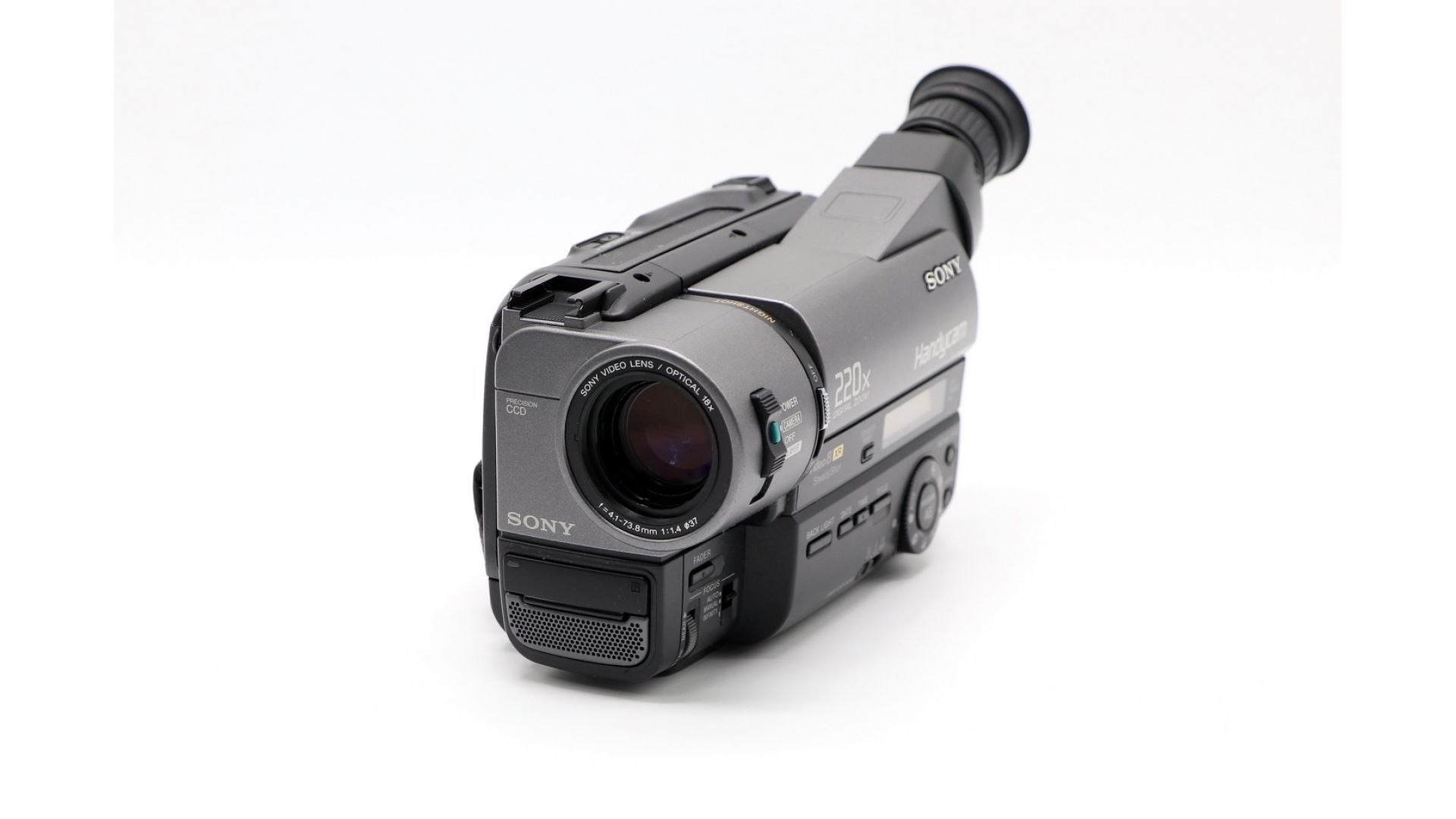 Тип видеокамеры -Video8, аналоговая. Zoom оптический / цифровой - 18x / 220x. Автоэкспозиция есть. Технология повышенного разрешения XR, фоторежим, 12 часов непрерывной записи, система стабилизации изображения SteadyShot.