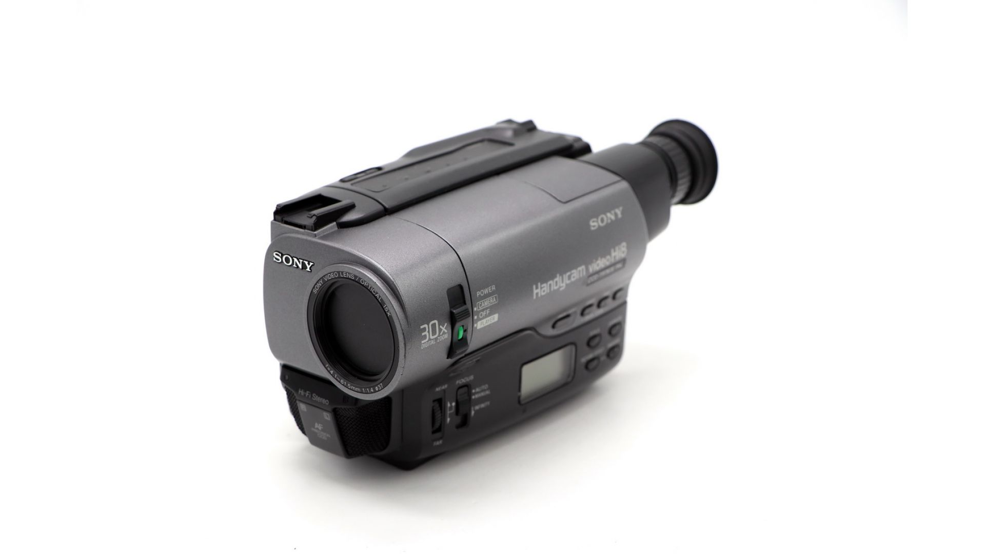 Видеокамера Hi8 (400 линий, Hi-Fi стерео-звук), PAL, светосильный объектив диаметром 37мм, число эл-тов матрицы - 570 тыс., 2 скорости записи/воспроизведения (SP/LP) до 4 часов на 1 кассету, электронный стабилизатор изображения при съемке с рук (SteadyShot 400тыс.эл-тов), быстрый/медленный "наезд" до 48х, auto/ручной фокус и диафрагма, автобаланс белого, выходы - НЧ-Video, S-video и антенный (ДМВ), L и R каналы звука, запись с внеших источников через A/V-вход.
