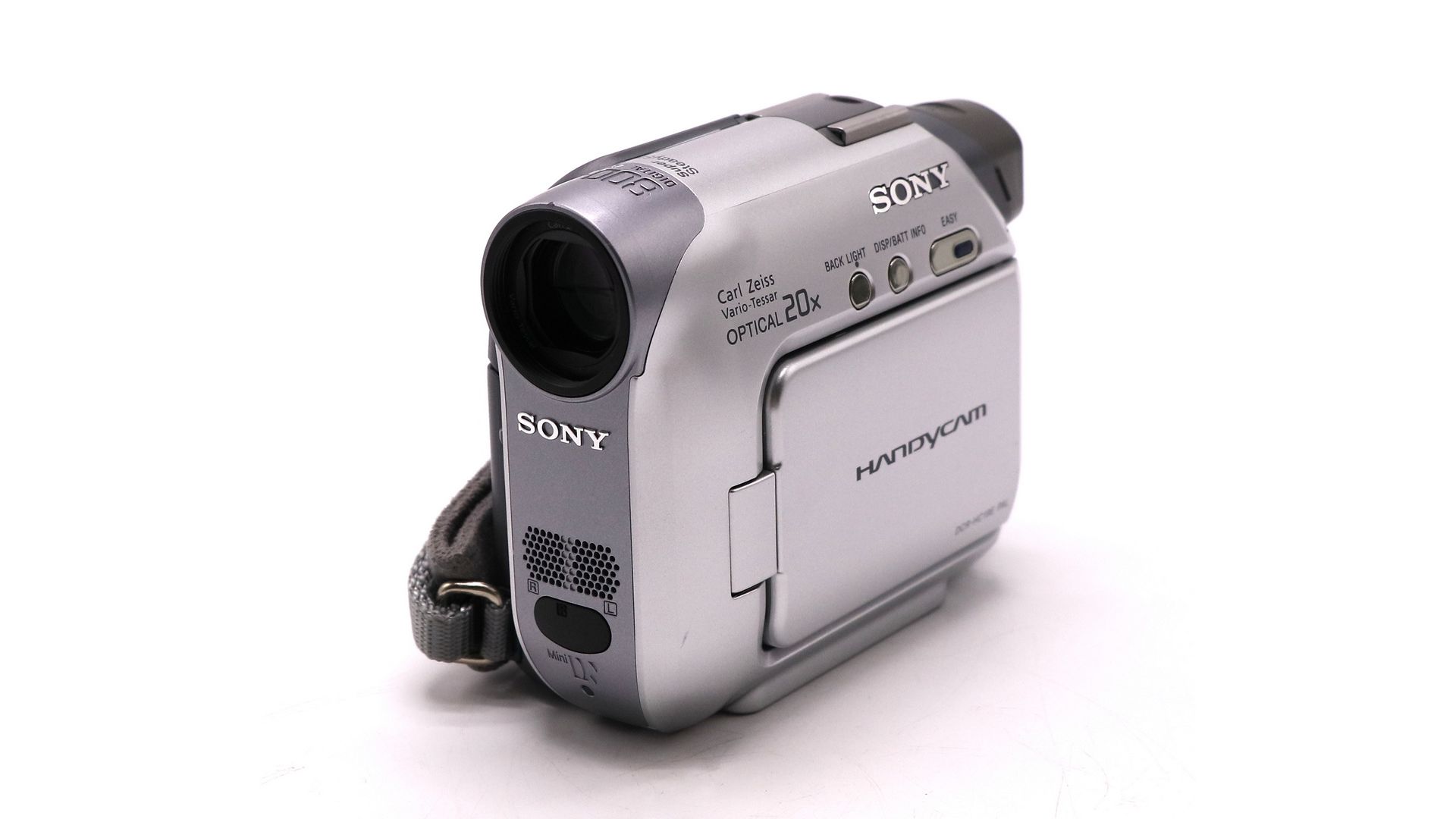 Очень компактный камкордер MiniDV Handycam с 2,5-дюймовым ЖК-экраном, объективом Carl Zeiss и потоковым USB.800 000-пиксельная матрица Advanced HAD CCD. Система стабилизации изображения Super SteadyShot. 20 кратное оптическое увеличение / 800 кратное цифровое увеличение. Дополнительные возможности - монтаж звука.