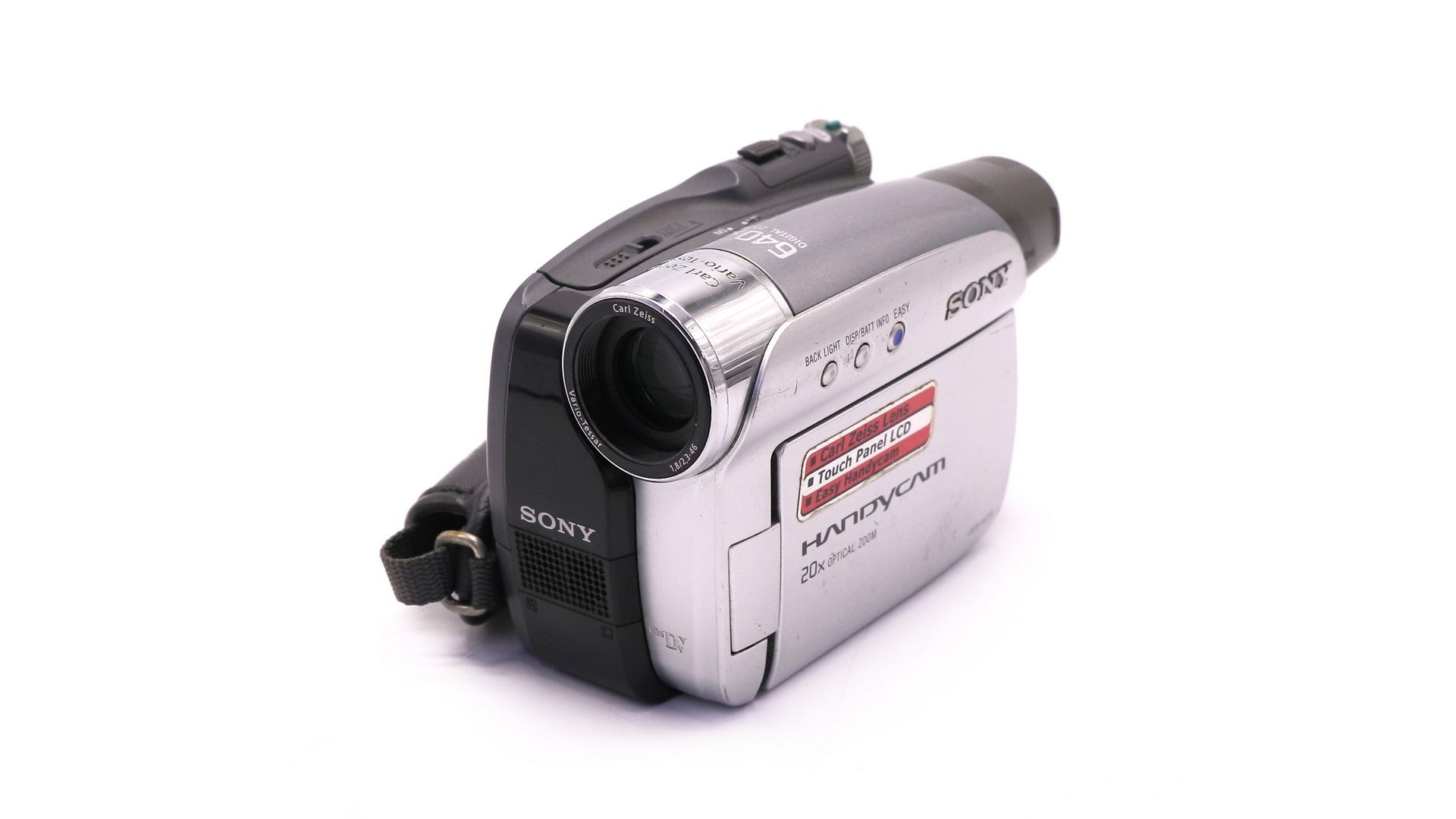 Суперкомпактная видеокамера MiniDV Handycam с ЖКД 2,5", объективом Carl Zeiss и оптическим увеличением 20x. 800 000-пиксельная матрица Advanced HAD CCD. Система стабилизации изображения Super SteadyShot. Кнопка записи на мониторе, звук стерео, меню на русском языке, DV-выход, кнопка прямого доступа к Click to DVD.