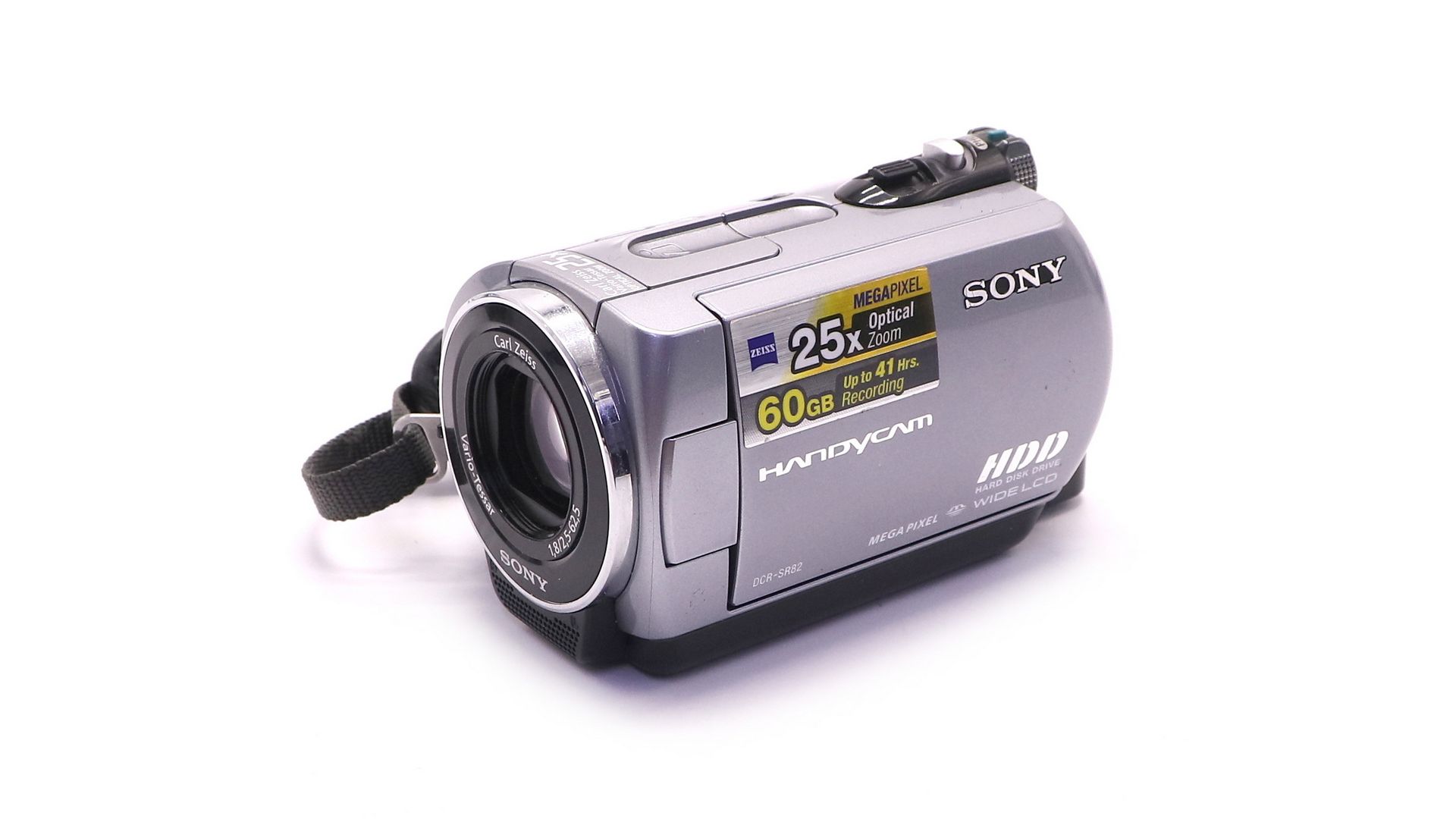 Модель DCR-SR82 с объемом жесткого диска 60 ГБ позволяет записать до 14 часов видео в наилучшем качестве. В камере реализована система стабилизации изображения Super SteadySho. Традиционно, устройство использует оптику Carl Zeiss Vario-Tessar. DCR-SR82 оснащена 2,7-дюймовым ЖК-дисплеем, 25-кратным оптическим зумом и 1-мегапиксельным CCD-сенсором.