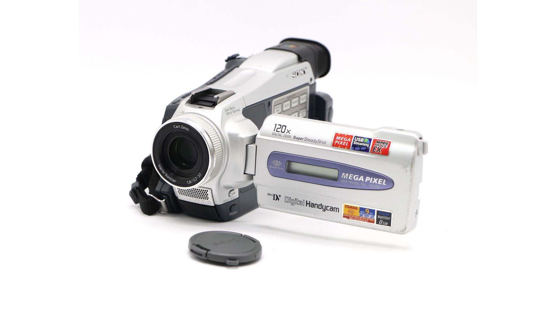 Камера формата MiniDV. Видоискатель электронный, цветной, 112 тыс пикселов. Выдержка 1/4000-1/4 с. Разрешение матрицы камеры 1.07 млн пиксел, 1/4" Advanced HAD CCD. Объектив камеры Carl Zeiss Vario-Sonnar, фокусное расстояние объектива камеры фото: 3.7-37 мм (эквивалентно 42-420 мм для 35-мм камер). видео: 3.7-37 мм (эквивалентно 50-500 мм для 35-мм камер). Светосила объектива камеры 1/1.8 на коротком фокусе, 1/2.2 на длинном фокусе. Зум оптический: 10x. Цифровой: 12x. Видеокамера с богатым набором функций и картой памяти Memory Stick для записи стоп-кадров.