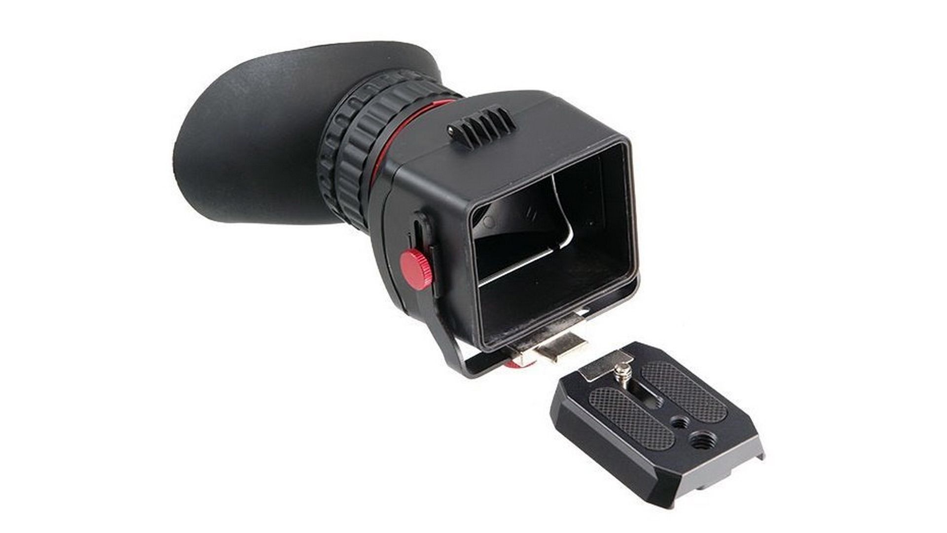 Предназначен для установки на зеркальные камеры с 3"/3.2" ЖК-экраном. Фокусирующая линза с 3-x кратным увеличением. На окуляре находится кольцо диоптрийной коррекции, это поможет настроить изображение под индивидуальные особенности зрения. Видоискатель соединяется с площадкой, установленной на камере, с помощью магнитного быстросъемного крепления. Рамка, соединяющая видоискатель и площадку, позволяет отрегулировать положение видоискателя в пространстве и имеет возможность движения в направлениях вверх/ вниз / влево / вправо. Если необходим быстрый доступ к ЖК-экрану без демонтажа видоискателя, можно откинуть окуляр вверх и легко получить к нему доступ. Положение видоискателя регулируется по вертикали и горизонтали (относительно площадки) в пределах 20 мм.