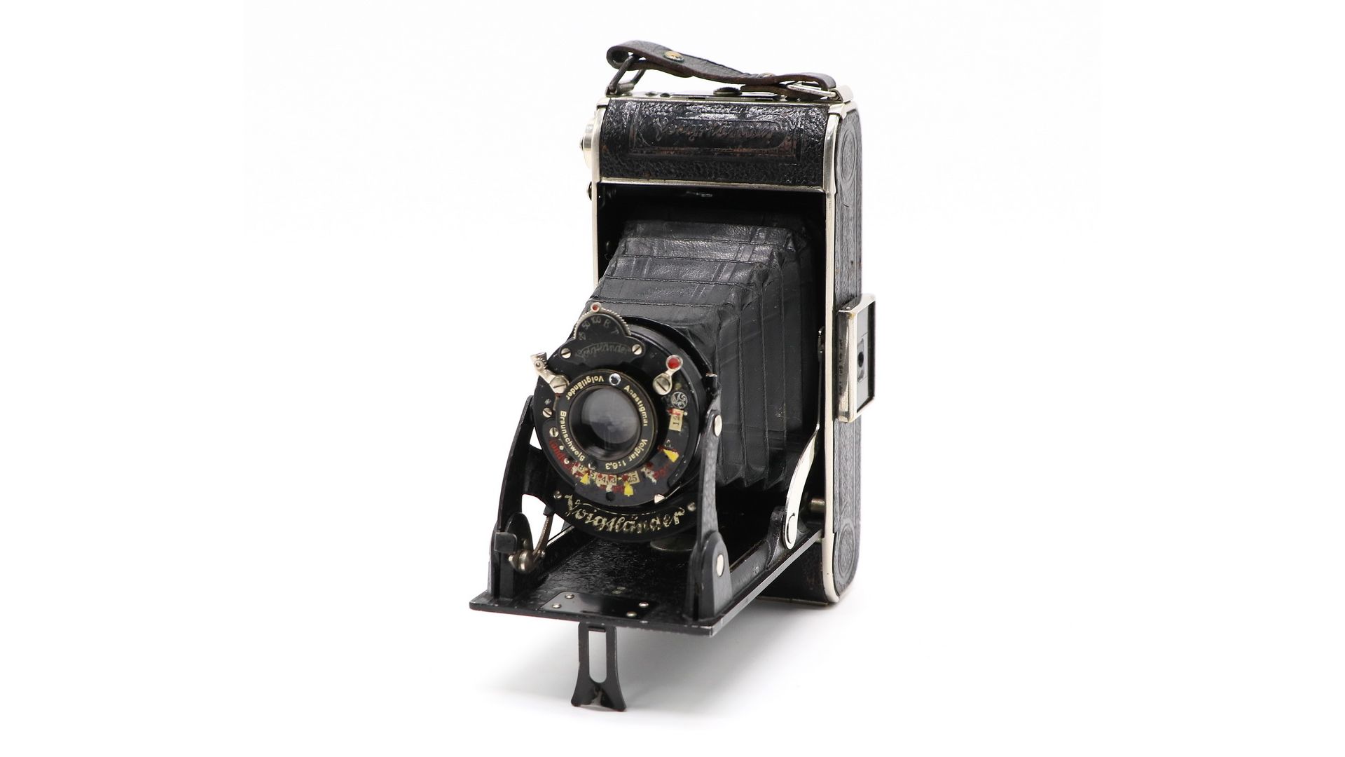 Размер кадра "6х9", фотоматериал пленка типа 120. Диапазон выдержек: от 1/250 до 1, а также "Т" и "В". Диафрагма: 4.5, 6.3, 9, 12, 18, 25. Объектив отличается высокой резкостью и проработкой деталей. Voigtlander с объективом Anastigmat Voigtar 6.3 - достойный экземпляр как для коллекции, так и для фотоэкспериментов.
