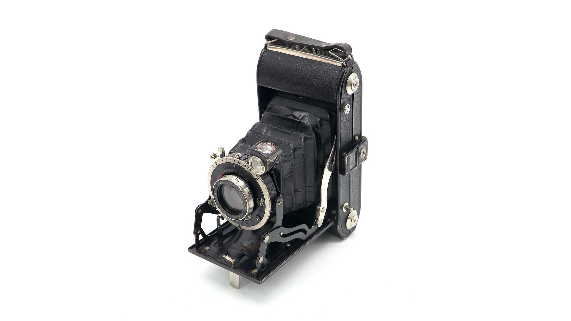 Компанния Wirgin была основана братьями Генрих, Макс и Джозеф Wirgin в 1920 году. Затвор центральный Compur с набором выдержек от 1 сек. до 1/250 сек., "Т" и "В". Размер кадра - формат 6x9, фотопленка типа 120. Отличный экземпляр для любой коллекции.