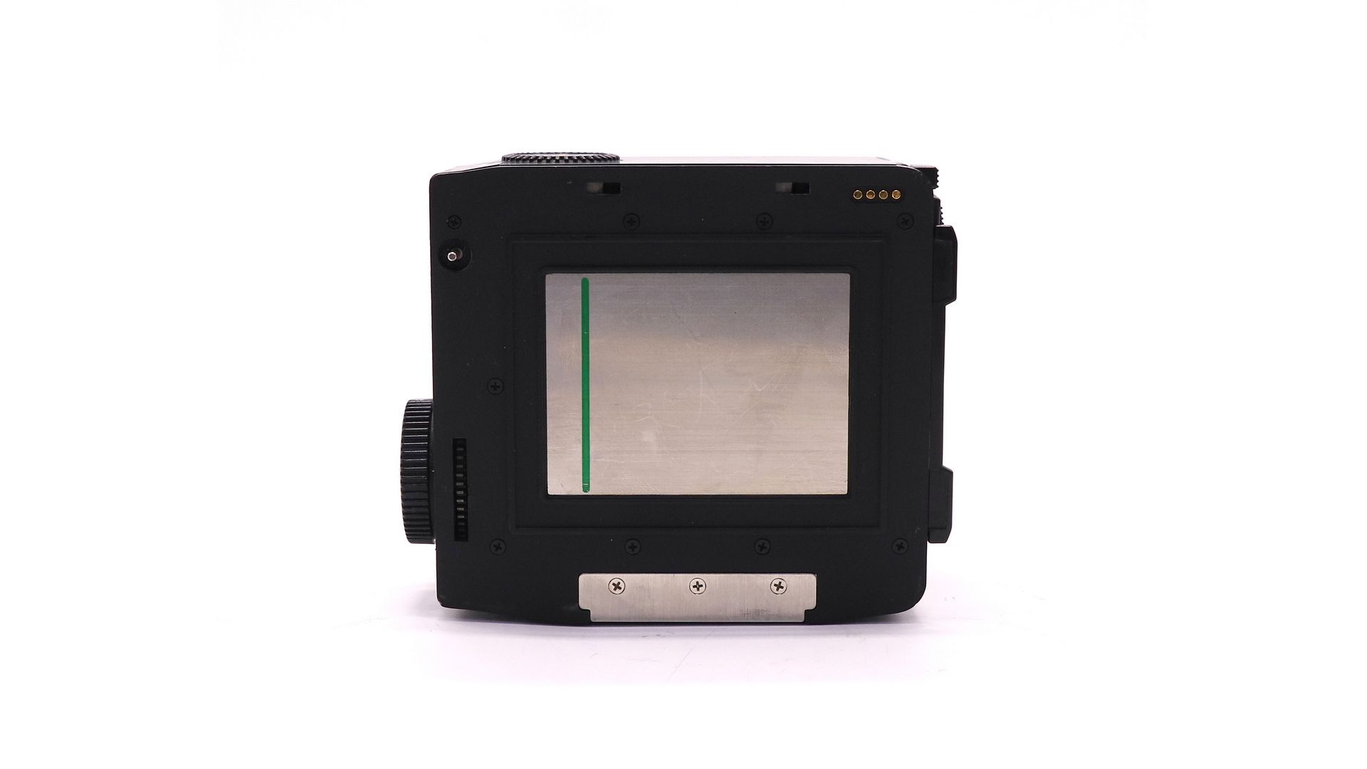 Задник Mamiya 120/220 для 645 Pro/Super может использовать пленку 120 или 220 типа. На заднике есть диск выбора светочувствительности ISO, который передаёт информацию о светочувствительности на корпус камеры при использовании дополнительного видоискателя AE Prism.