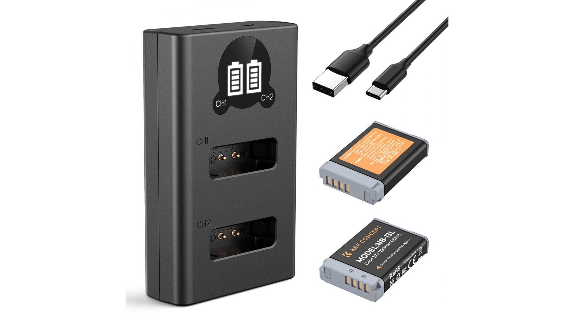 Зарядка и аккумулятор NB-13L 1250 мАч (2 шт) K&F Concept для Canon NB-13L