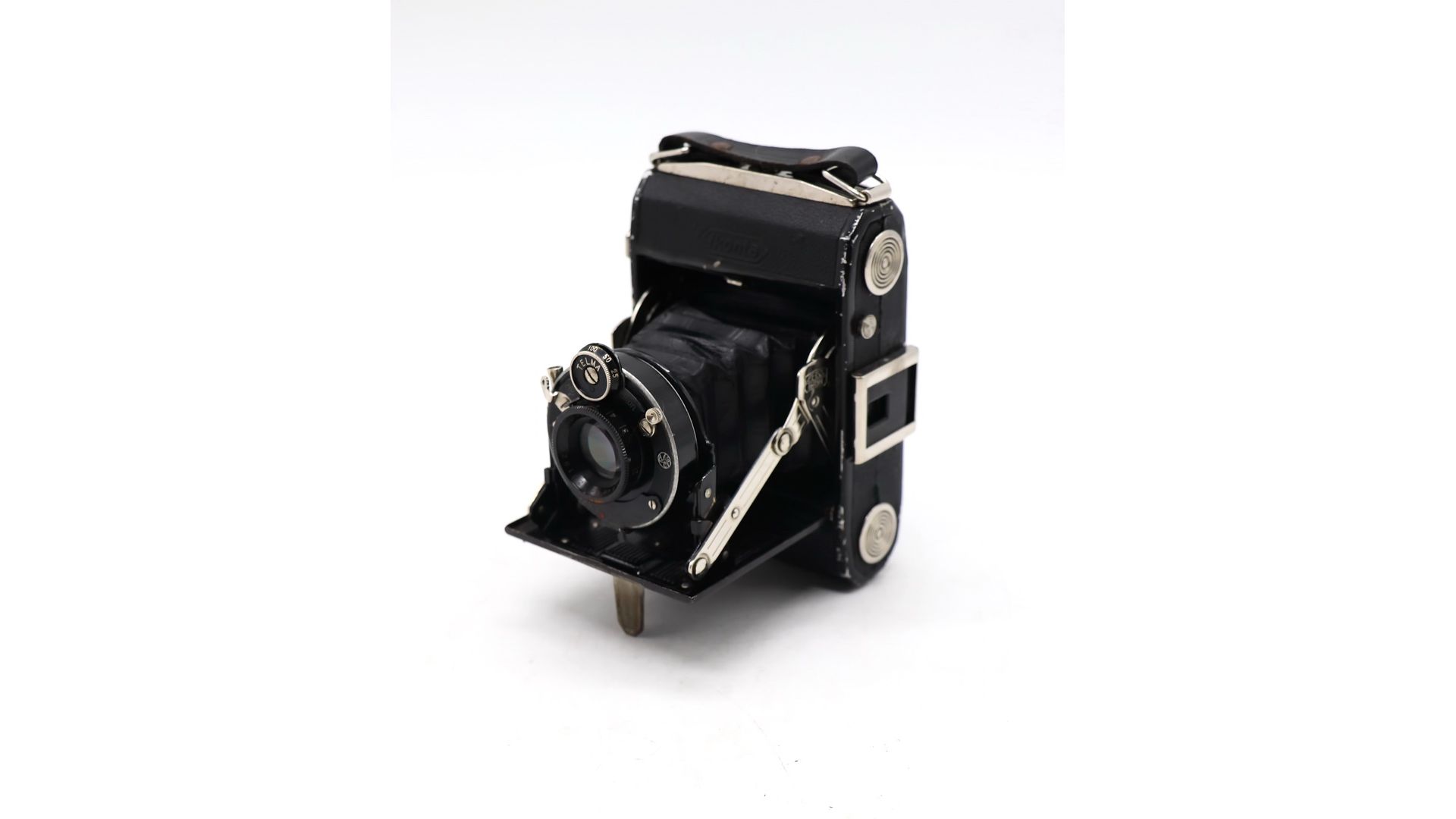 Из-за своей миниатюрности получила название камеры для карманного жилета. Вы можете носить Ikonta в кармане, куда бы вы ни пошли, как с любой цифровой компактной камерой. Затвор центральный Telma. Фотоматериал - пленка типа 127, размер кадра - 3х 4 см. На выходе получаются неплохие изображения из этого крошечного, но хорошо продуманного оптического устройства. Хорошо подойдет для реализации различных творческих задумок или для коллекции.