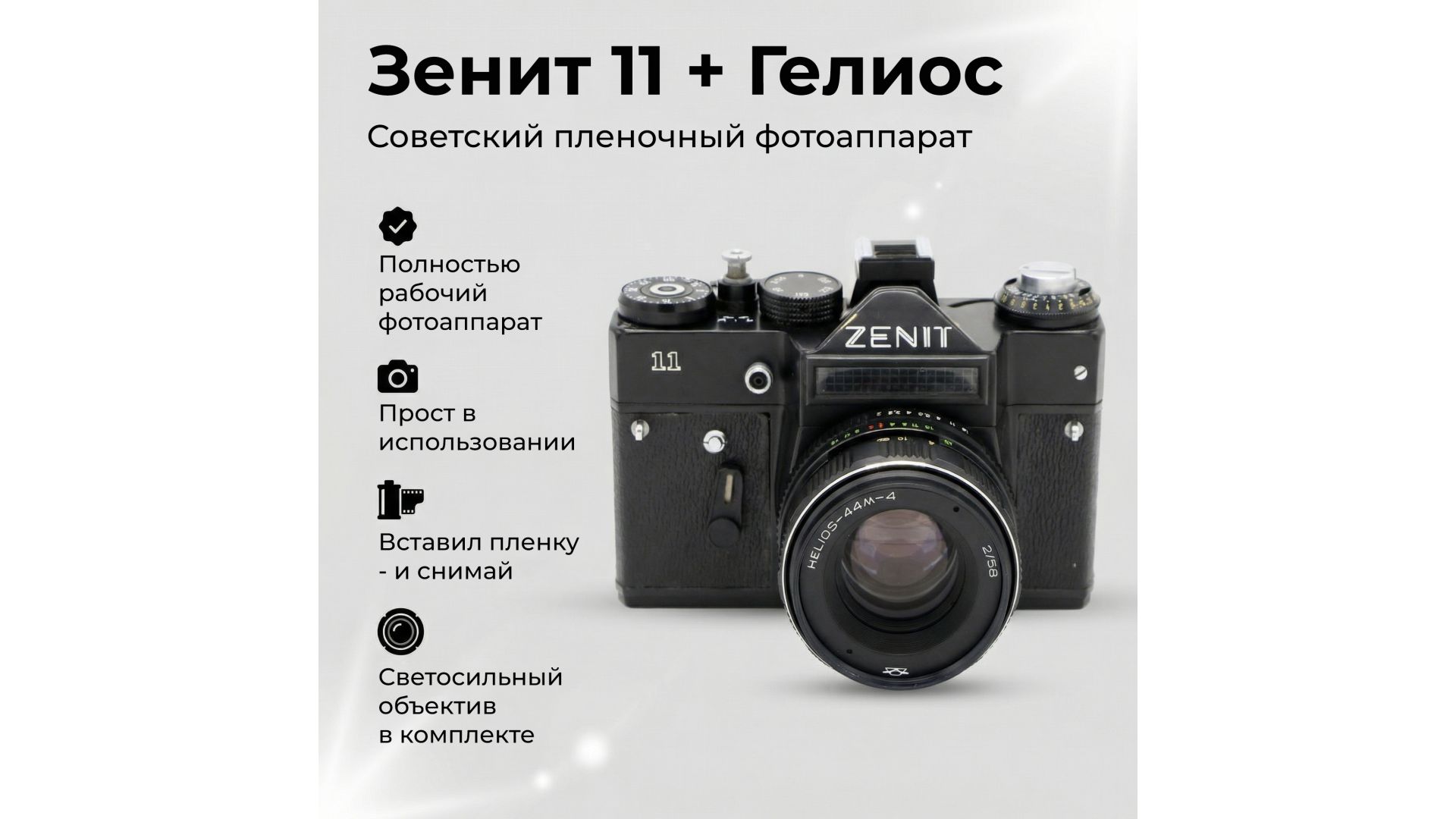 Комплектация:Объектив Гелиос в ассортименте.