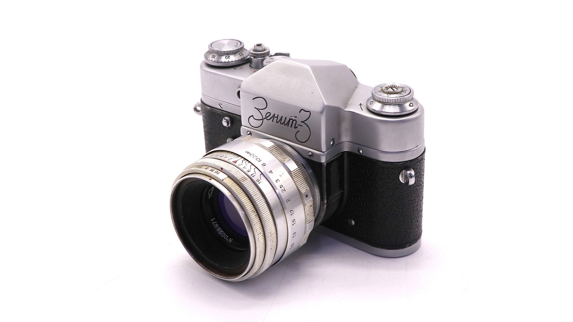 Советский малоформатный зеркальный фотоаппарат Зенит 3. Ранний экземпляр, произведен на КМЗ в 1960 году. Резьба - М39.