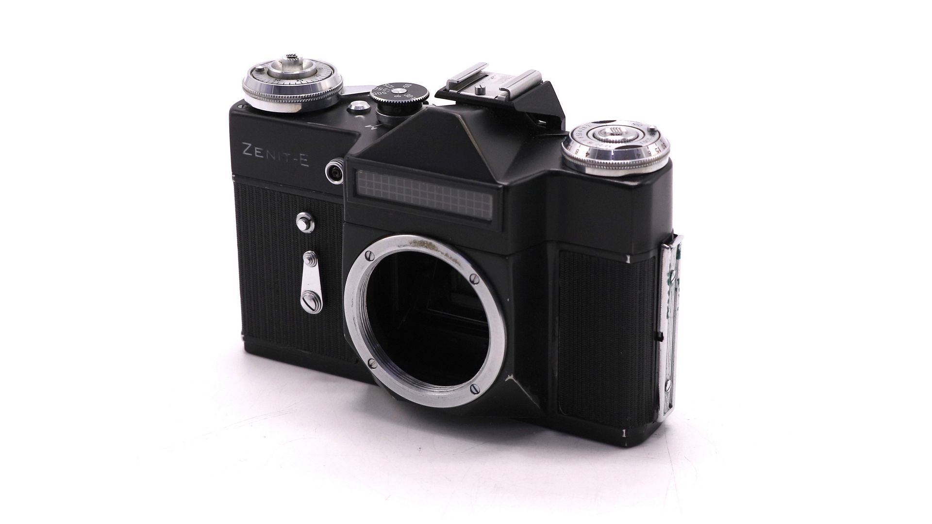 Это полностью механический аппарат, ставший для миллионов советских людей первым шагом в мир серьезной фотографии. Его ключевые особенности — надежность, простота и ремонтопригодность. В основе лежит прочный металлический корпус. «Зенит-Е» оснащен встроенным селеновым экспонометром (буква «Е» в названии означает «экспонометрический»), который не требовал батареек, однако со временем его чувствительность могла снижаться.