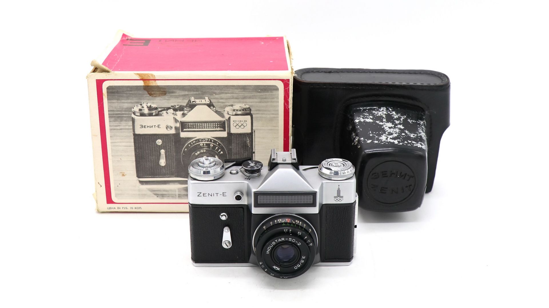 Зенит Е + Индустар 50-2 kit Олимпийский в упаковке (1979)