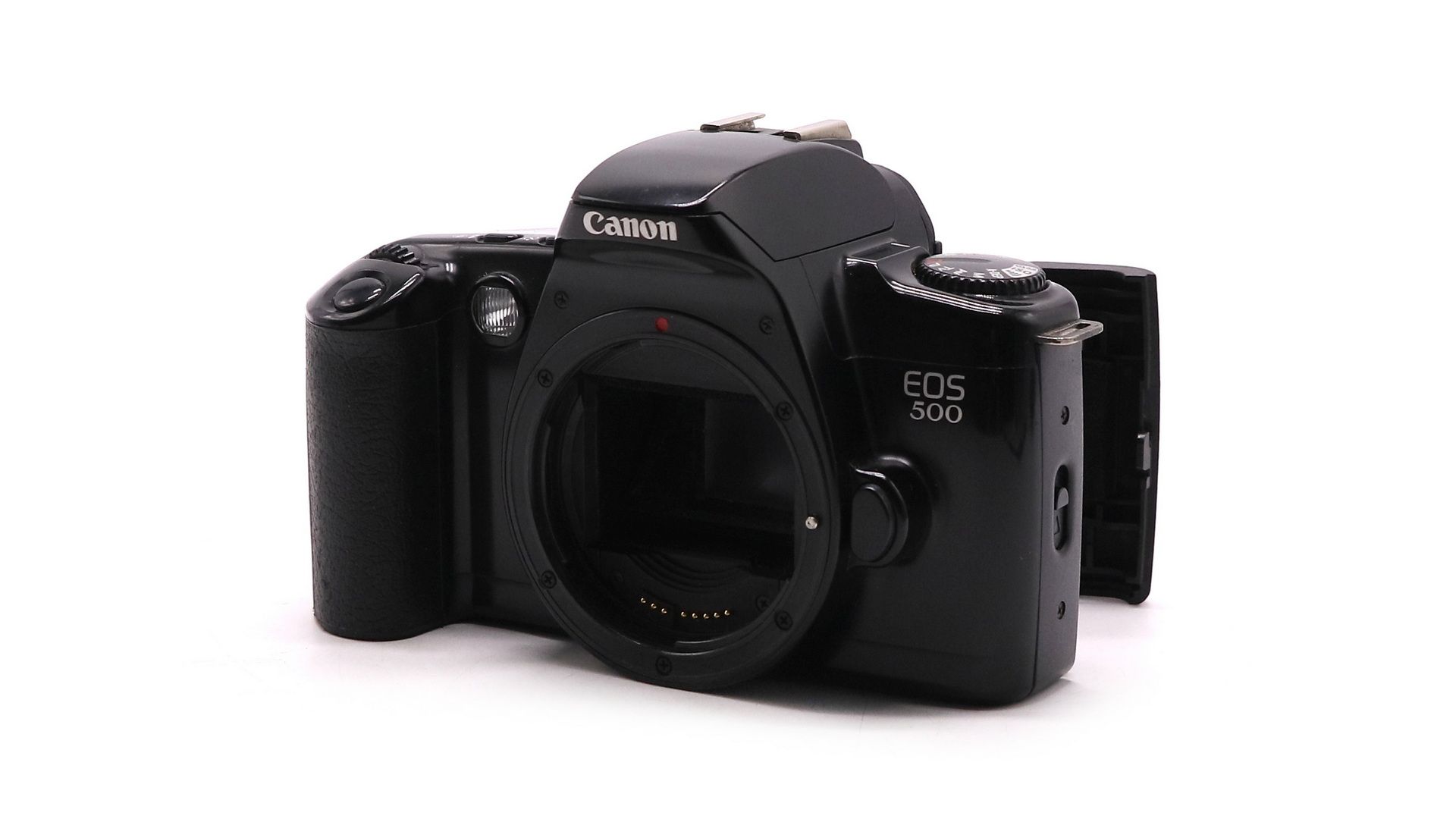 Отличается ускоренной зарядкой фотоплёнки, взводом затвора и перемоткой фотоплёнки встроенным электроприводом. Ввод значений светочувствительности материала — DX-кодом или вручную. Информация о работе фотокамеры отображается на ЖК-дисплее. Режимы автоматики (приоритет выдержки; приоритет диафрагмы; режим программной линии, программы: портрет, пейзаж, спорт, макросъёмка). Источник питания — два элемента CR123A/DL123A. Canon EOS 500 - простая в обращении пленочная фотокамера с хорошим функционалом.