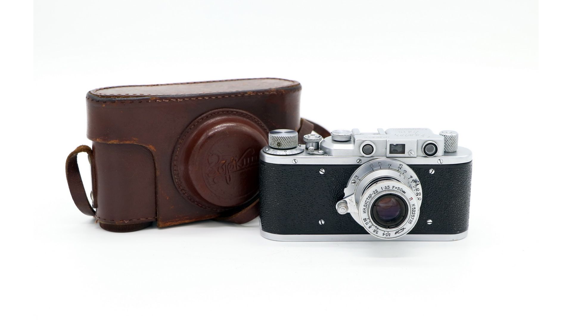 Дальномерный фотоаппарат Зоркий / Zorki + Индустар-22 Выпущен на КМЗ, в 1952 году. Данный экземпляр с двойной надписью наименования встречается довольно редко, представляет коллекционный интерес. На фото представлен образец!